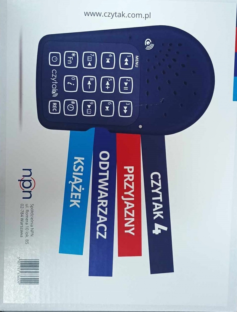W ramach projektu nasza Biblioteka otrzymała nieodpłatnie jeden egzemplarz odtwarzacza cyfrowych książek mówionych – Czytak 4.