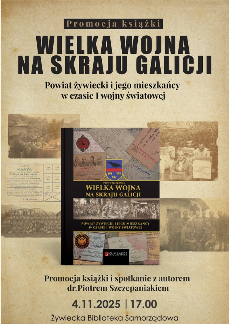 Żywiecka Biblioteka Samorządowa zaprasza na spotkanie promocyjne książki "Wielka Wojna na skraju Galicji. Powiat żywiecki i jego mieszkańcy w czasie I wojny światowej".